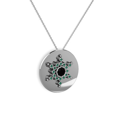 Siyah zirkon ve yeşil kuvars 8 ayar beyaz altın kolye (40 cm beyaz altın rolo zincir)
