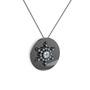 Swarovski ve akuamarin 925 ayar siyah rodyum kaplama gümüş kolye (40 cm gümüş rolo zincir)