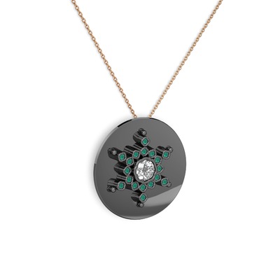Swarovski ve kök zümrüt 925 ayar siyah rodyum kaplama gümüş kolye (40 cm rose altın rolo zincir)