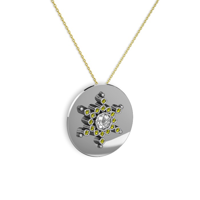 Swarovski ve peridot 14 ayar beyaz altın kolye (40 cm altın rolo zincir)