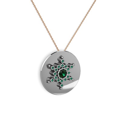 Yeşil kuvars 18 ayar beyaz altın kolye (40 cm rose altın rolo zincir)