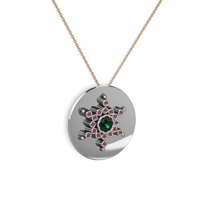 Yeşil kuvars ve kök yakut 18 ayar beyaz altın kolye (40 cm gümüş rolo zincir)