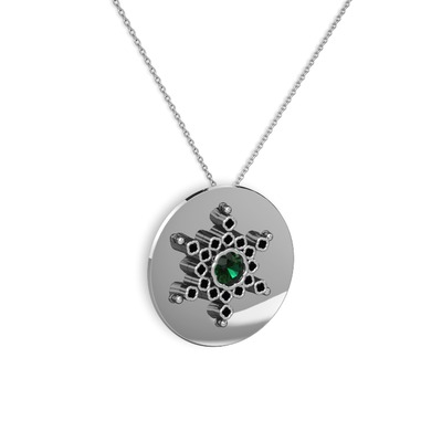 Yeşil kuvars ve siyah zirkon 8 ayar beyaz altın kolye (40 cm beyaz altın rolo zincir)