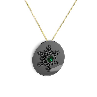 Yeşil kuvars ve siyah zirkon 925 ayar siyah rodyum kaplama gümüş kolye (40 cm altın rolo zincir)
