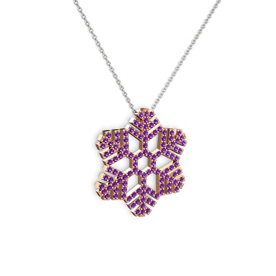Ametist 14 ayar rose altın kolye (40 cm gümüş rolo zincir)