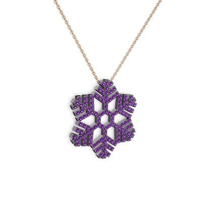 Ametist 925 ayar siyah rodyum kaplama gümüş kolye (40 cm rose altın rolo zincir)