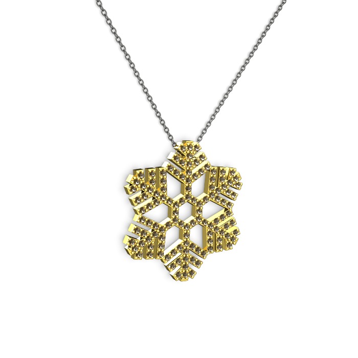 Dumanlı kuvars 18 ayar altın kolye (40 cm gümüş rolo zincir)