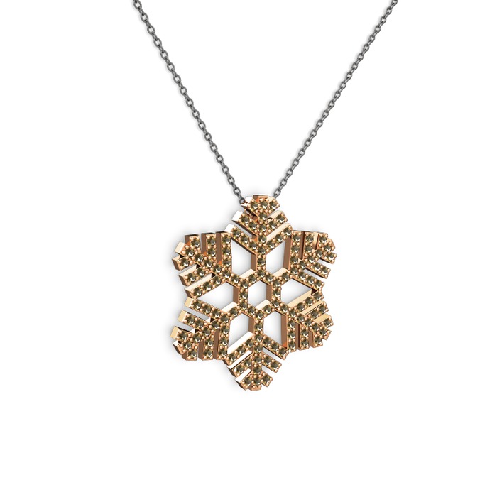 Dumanlı kuvars 18 ayar rose altın kolye (40 cm gümüş rolo zincir)