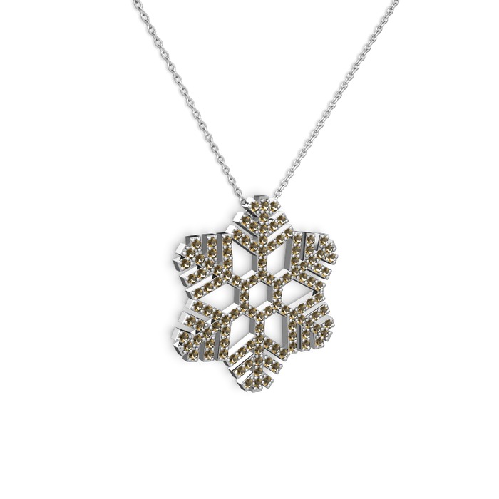 Dumanlı kuvars 8 ayar beyaz altın kolye (40 cm beyaz altın rolo zincir)