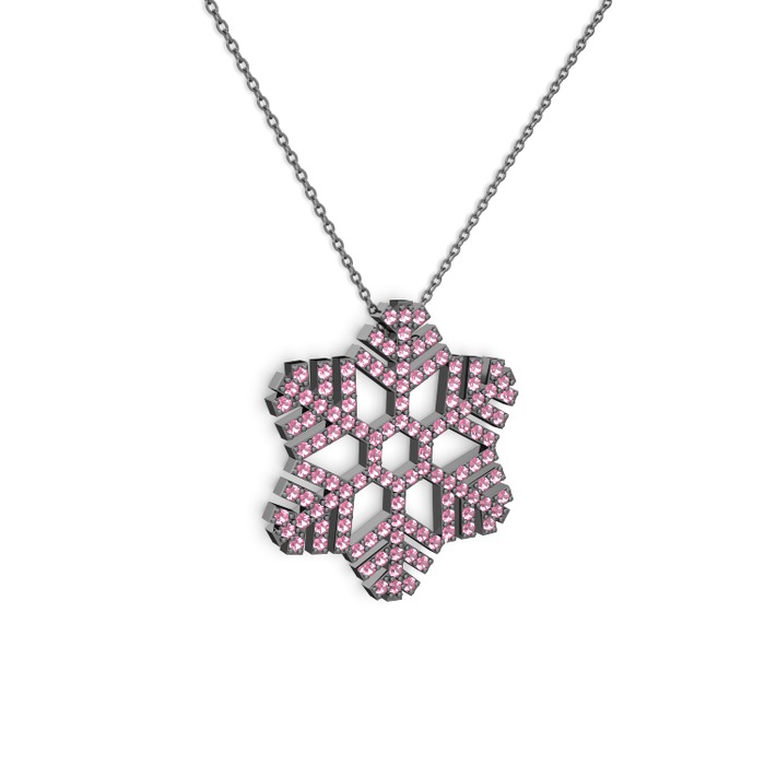 Pembe kuvars 925 ayar siyah rodyum kaplama gümüş kolye (40 cm gümüş rolo zincir)