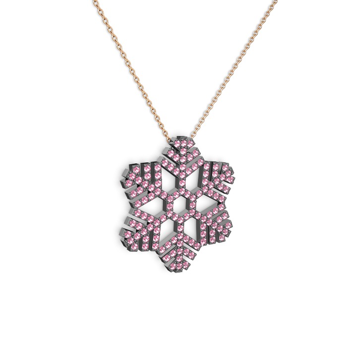Pembe kuvars 925 ayar siyah rodyum kaplama gümüş kolye (40 cm rose altın rolo zincir)