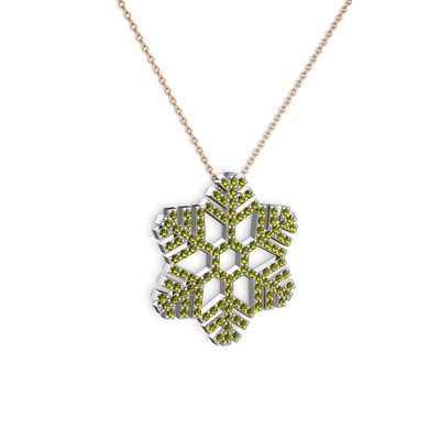 Peridot 14 ayar beyaz altın kolye (40 cm gümüş rolo zincir)