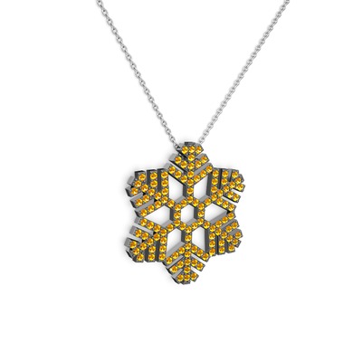 Sitrin 925 ayar siyah rodyum kaplama gümüş kolye (40 cm beyaz altın rolo zincir)
