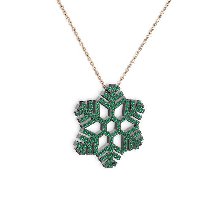 Yeşil kuvars 925 ayar siyah rodyum kaplama gümüş kolye (40 cm rose altın rolo zincir)
