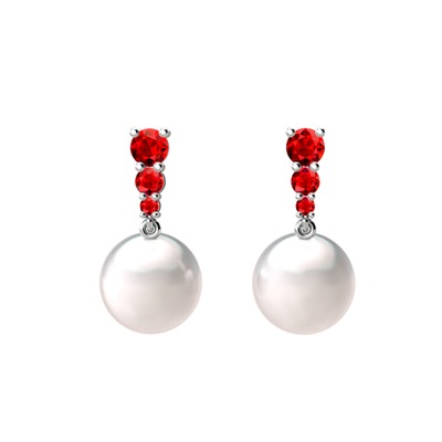 Inci ve garnet 18 ayar beyaz altın küpe
