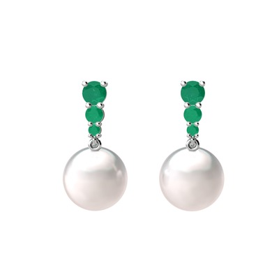 Inci ve kök zümrüt 14 ayar beyaz altın küpe