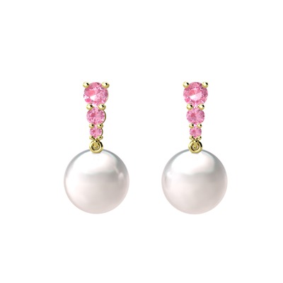 Inci ve pembe kuvars 8 ayar altın küpe