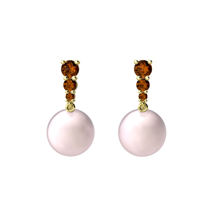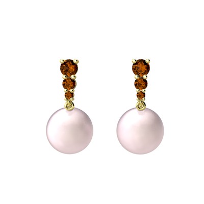 Pembe inci ve dumanlı kuvars 14 ayar altın küpe