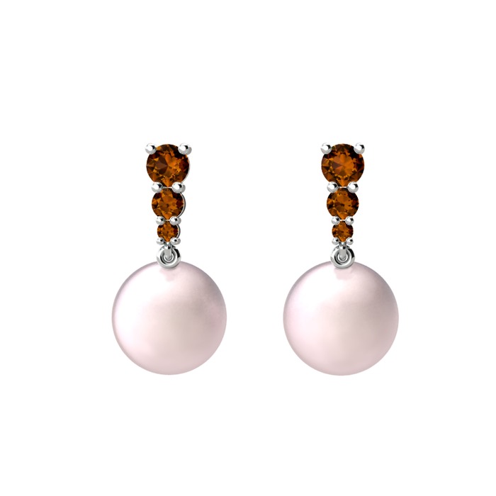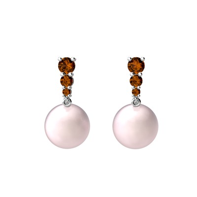 Pembe inci ve dumanlı kuvars 14 ayar beyaz altın küpe