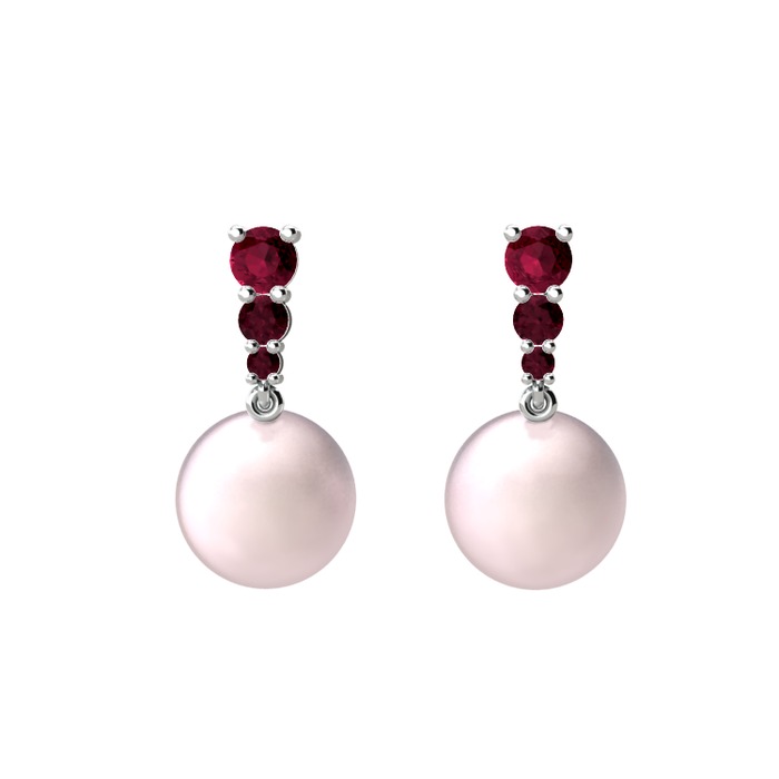 Pembe inci ve kök yakut 8 ayar beyaz altın küpe