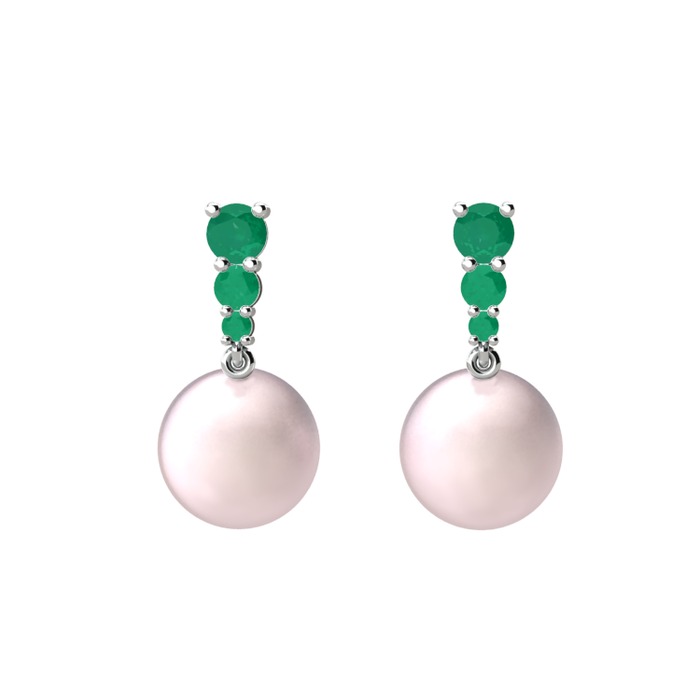 Pembe inci ve kök zümrüt 925 ayar gümüş küpe