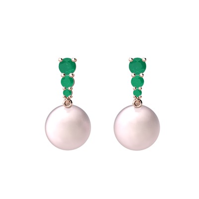 Pembe inci ve kök zümrüt 925 ayar rose altın kaplama gümüş küpe