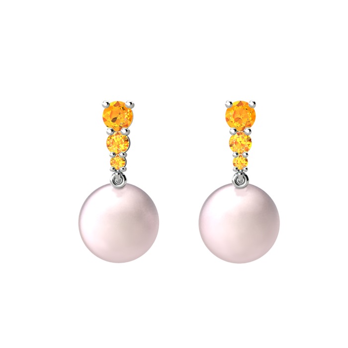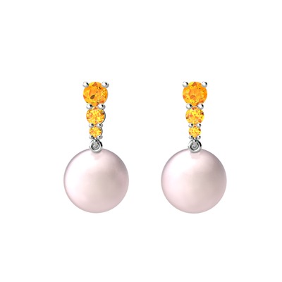 Pembe inci ve sitrin 18 ayar beyaz altın küpe