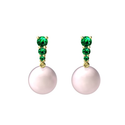 Pembe inci ve yeşil kuvars 925 ayar altın kaplama gümüş küpe