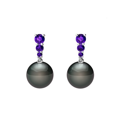 Siyah inci ve ametist 925 ayar gümüş küpe