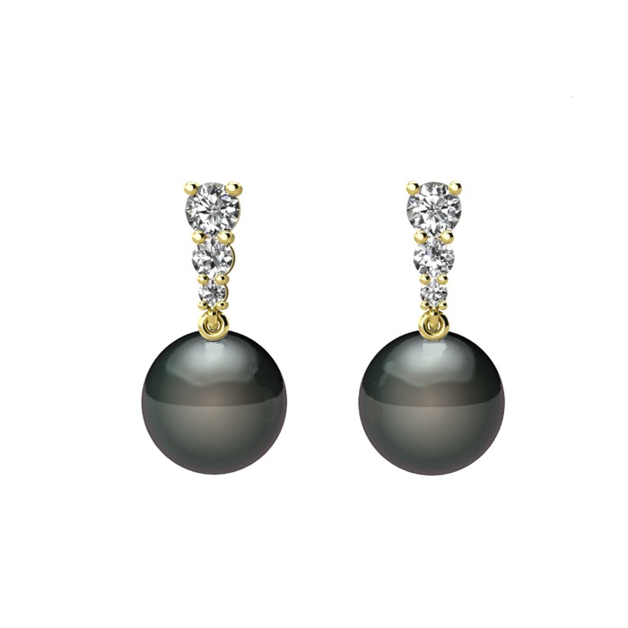 Siyah inci ve beyaz zirkon 925 ayar altın kaplama gümüş küpe