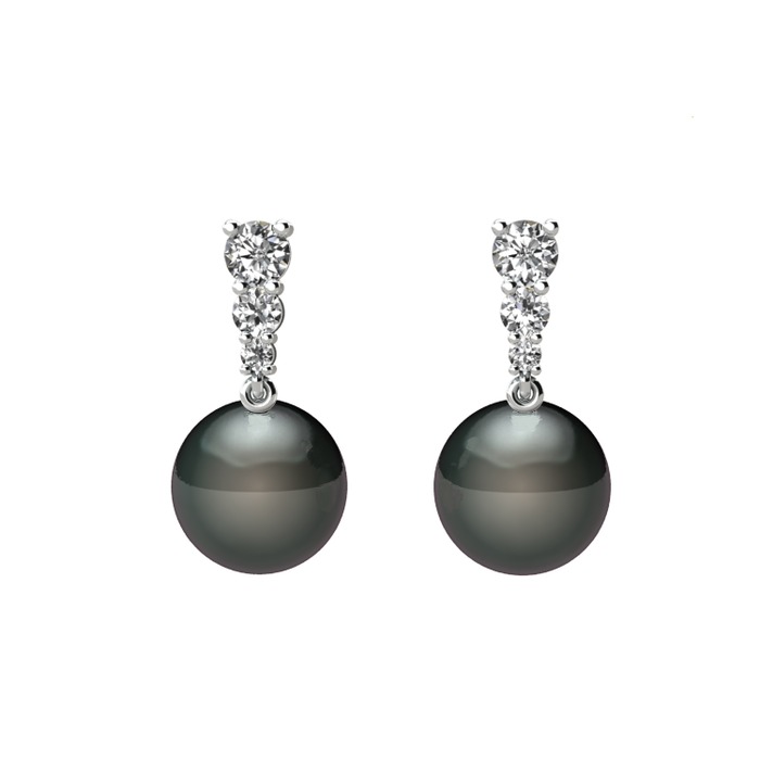 Siyah inci ve beyaz zirkon 925 ayar gümüş küpe