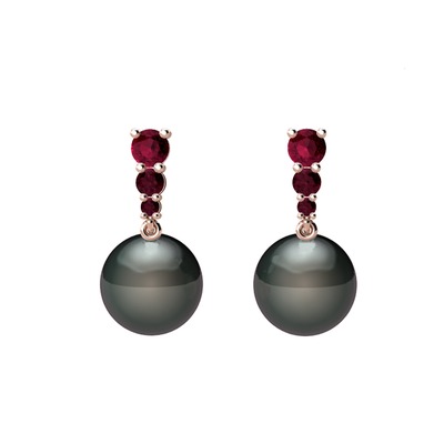 Siyah inci ve kök yakut 8 ayar rose altın küpe