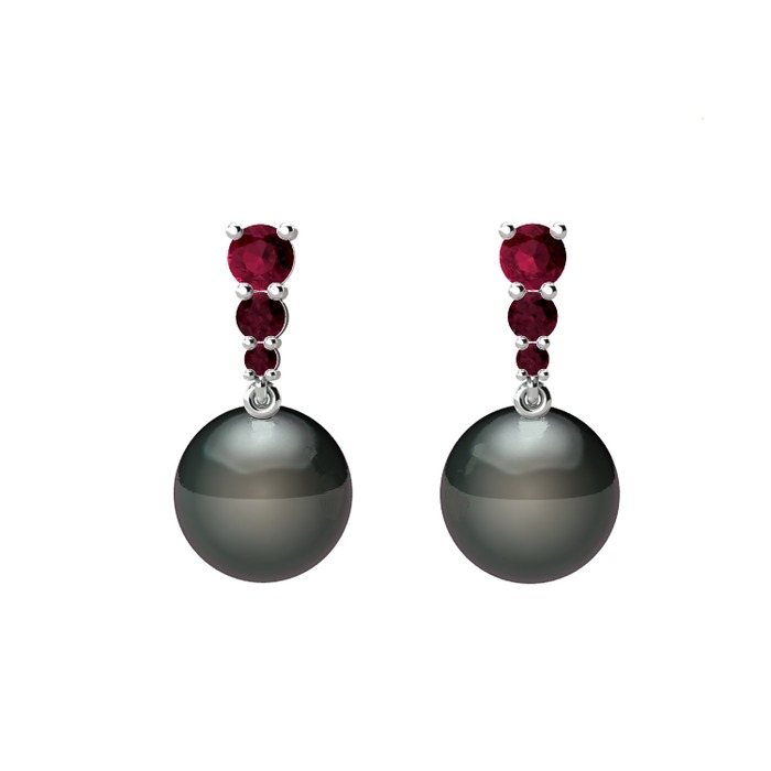 Siyah inci ve kök yakut 925 ayar gümüş küpe