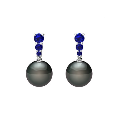 Siyah inci ve lab safir 14 ayar beyaz altın küpe
