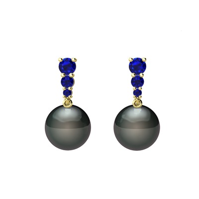 Siyah inci ve lab safir 925 ayar altın kaplama gümüş küpe
