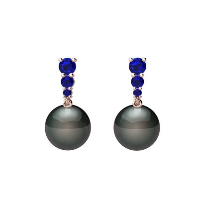 Siyah inci ve lab safir 925 ayar rose altın kaplama gümüş küpe