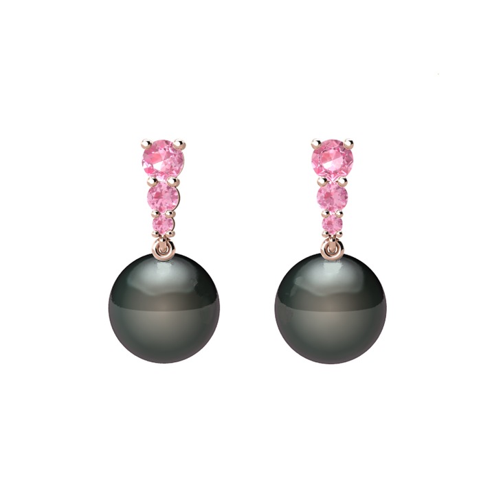 Siyah inci ve pembe kuvars 8 ayar rose altın küpe