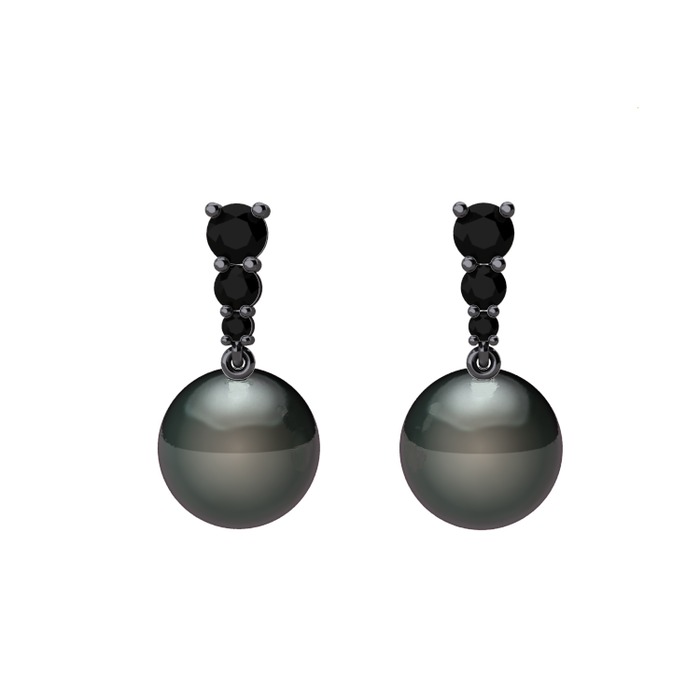 Siyah inci ve siyah zirkon 925 ayar siyah rodyum kaplama gümüş küpe