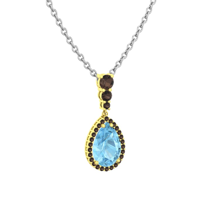 Akuamarin ve dumanlı kuvars 8 ayar altın kolye (40 cm beyaz altın rolo zincir)