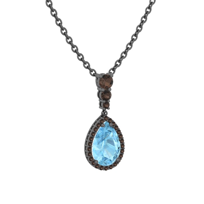 Akuamarin ve dumanlı kuvars 925 ayar siyah rodyum kaplama gümüş kolye (40 cm gümüş rolo zincir)