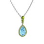 Akuamarin ve peridot 14 ayar beyaz altın kolye (40 cm beyaz altın rolo zincir)