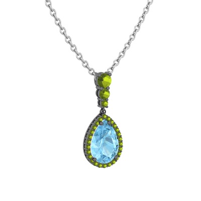 Akuamarin ve peridot 925 ayar siyah rodyum kaplama gümüş kolye (40 cm beyaz altın rolo zincir)