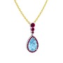 Akuamarin ve rodolit garnet 8 ayar beyaz altın kolye (40 cm gümüş rolo zincir)