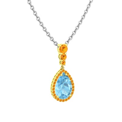 Akuamarin ve sitrin 18 ayar altın kolye (40 cm beyaz altın rolo zincir)
