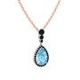 Akuamarin ve siyah zirkon 8 ayar beyaz altın kolye (40 cm rose altın rolo zincir)