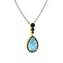 Akuamarin ve siyah zirkon 925 ayar altın kaplama gümüş kolye (40 cm beyaz altın rolo zincir)