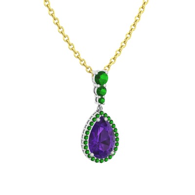 Ametist ve yeşil kuvars 8 ayar beyaz altın kolye (40 cm altın rolo zincir)