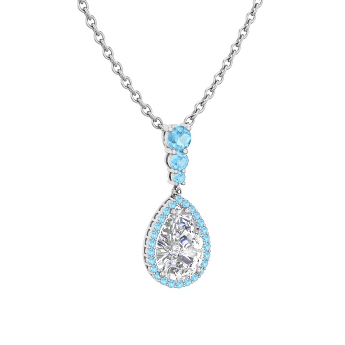 Beyaz zirkon ve akuamarin 14 ayar beyaz altın kolye (40 cm gümüş rolo zincir)