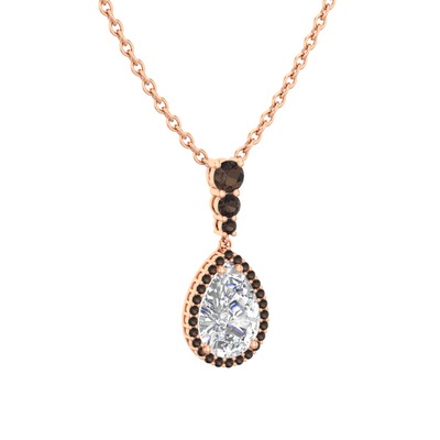 Beyaz zirkon ve dumanlı kuvars 925 ayar rose altın kaplama gümüş kolye (40 cm rose altın rolo zincir)