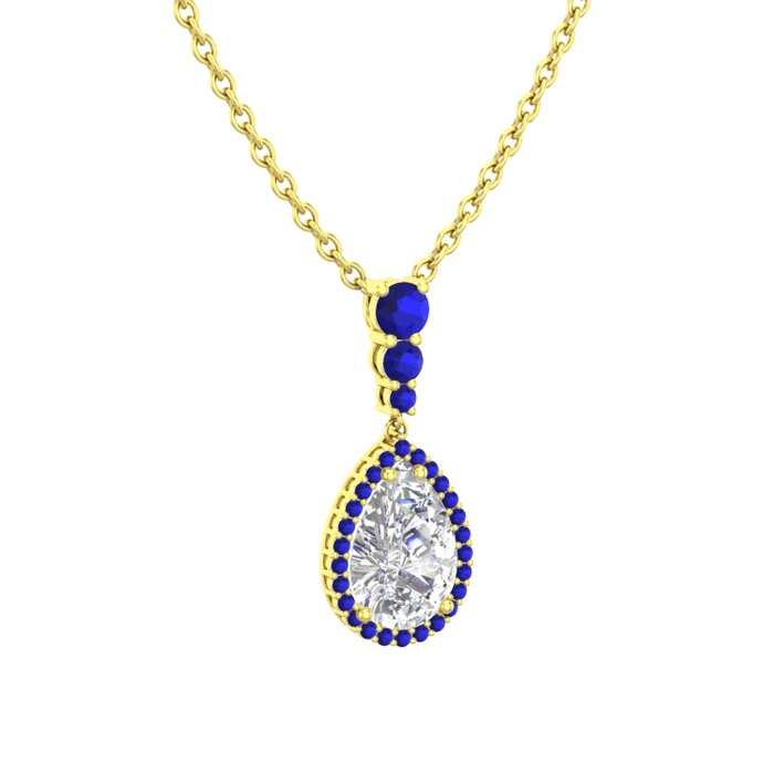 Beyaz zirkon ve lab safir 8 ayar altın kolye (40 cm altın rolo zincir)